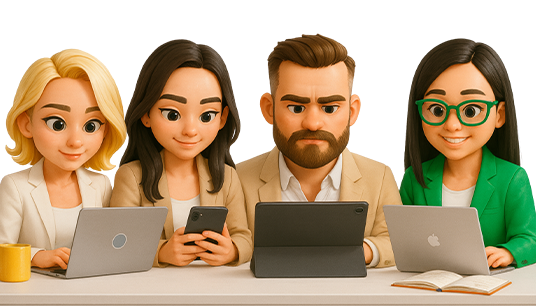 Ontdek wat AI voor jouw organisatie kan doen. Max, Emma en Roos staan je graag te woord.